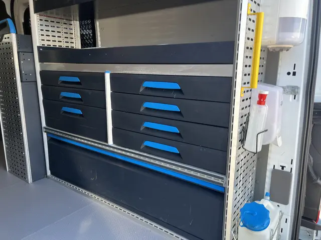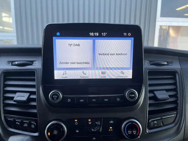Ford Transit 350 2.0 TDCI L2H2 RWD 170pk Kastinrichting Werkplaatsinrichting Airco Cruise controle Navigatiesysteem Telefoonverbinding Parkeersensoren voor en achter 2-Persoons Bpm vrij Sortimo Werkplaats Omvormer St