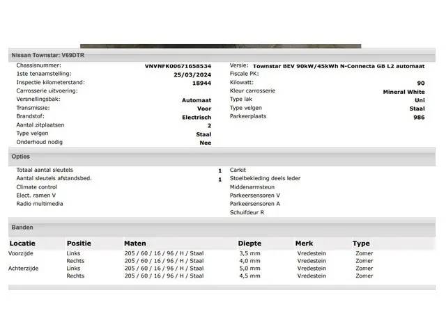 Voertuiggegevens van deze Nissan Townstar