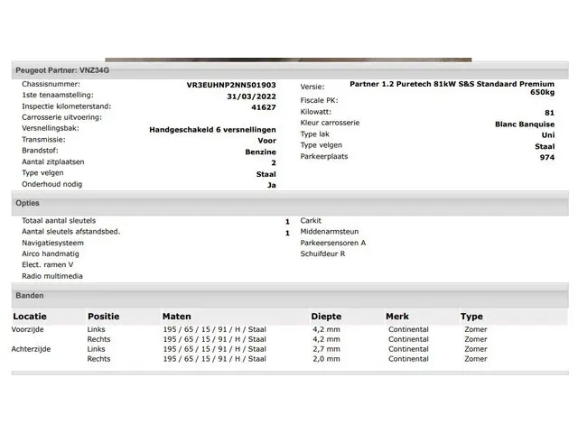 Voertuiggegevens van deze Peugeot Partner