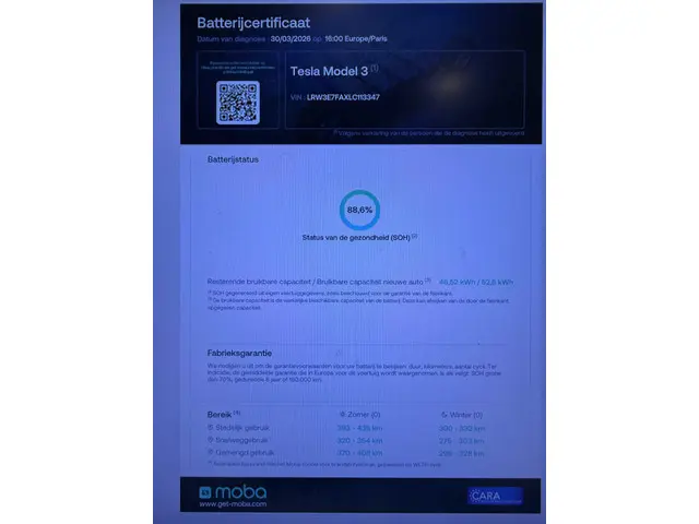 Voertuiggegevens van deze Tesla Model 3